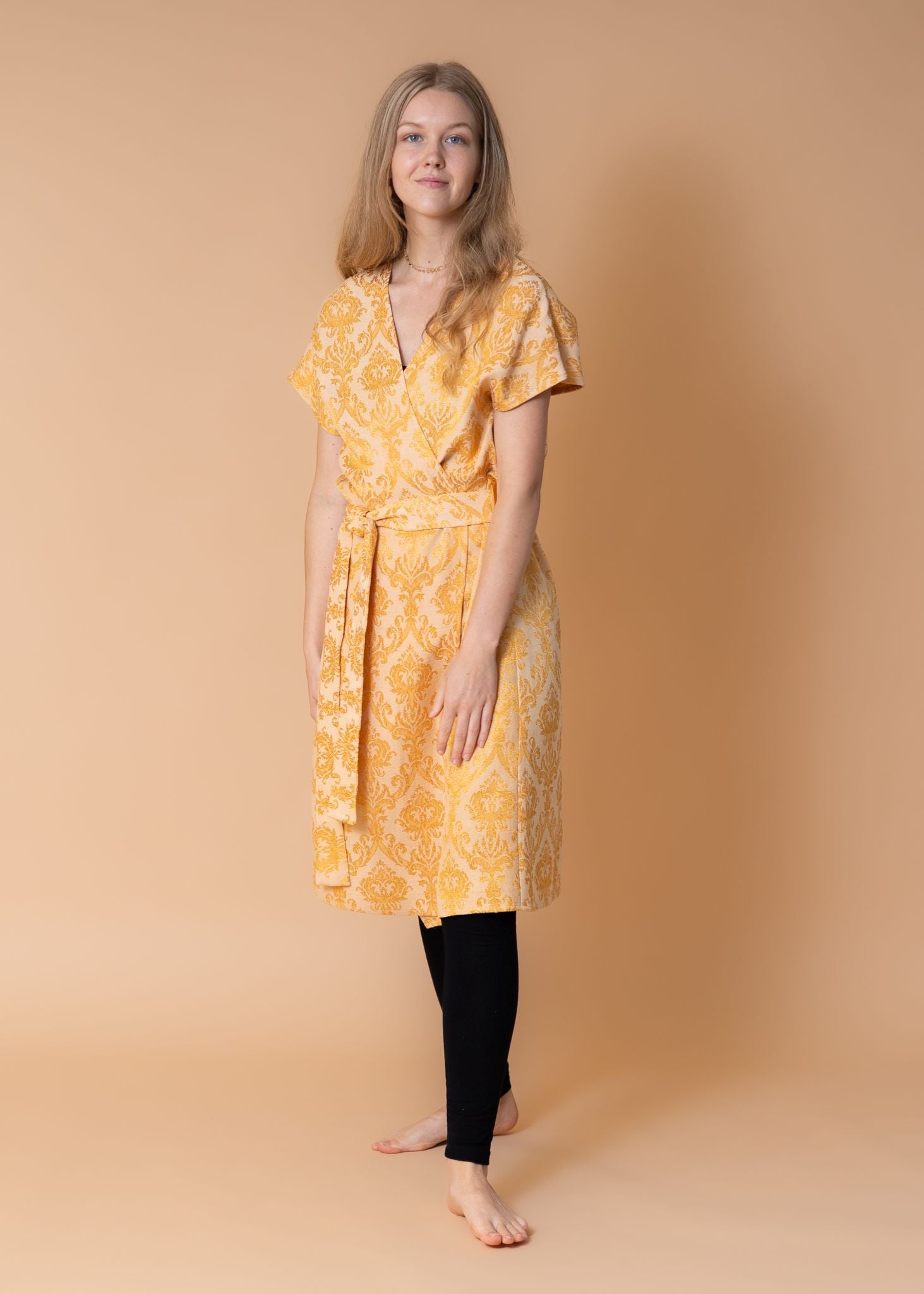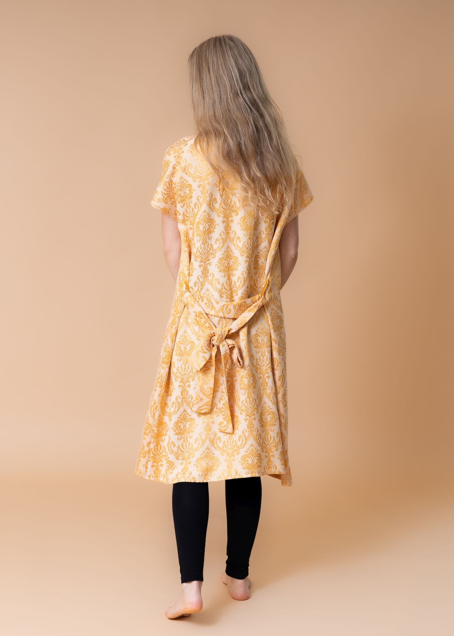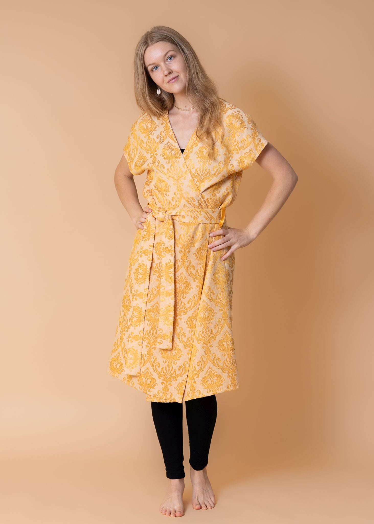 Vest on kergelt kehasse töödeldud, pikendatud õlaga. Kaasasolev vöö võimaldab vesti mugavalt eest kinni siduda.
