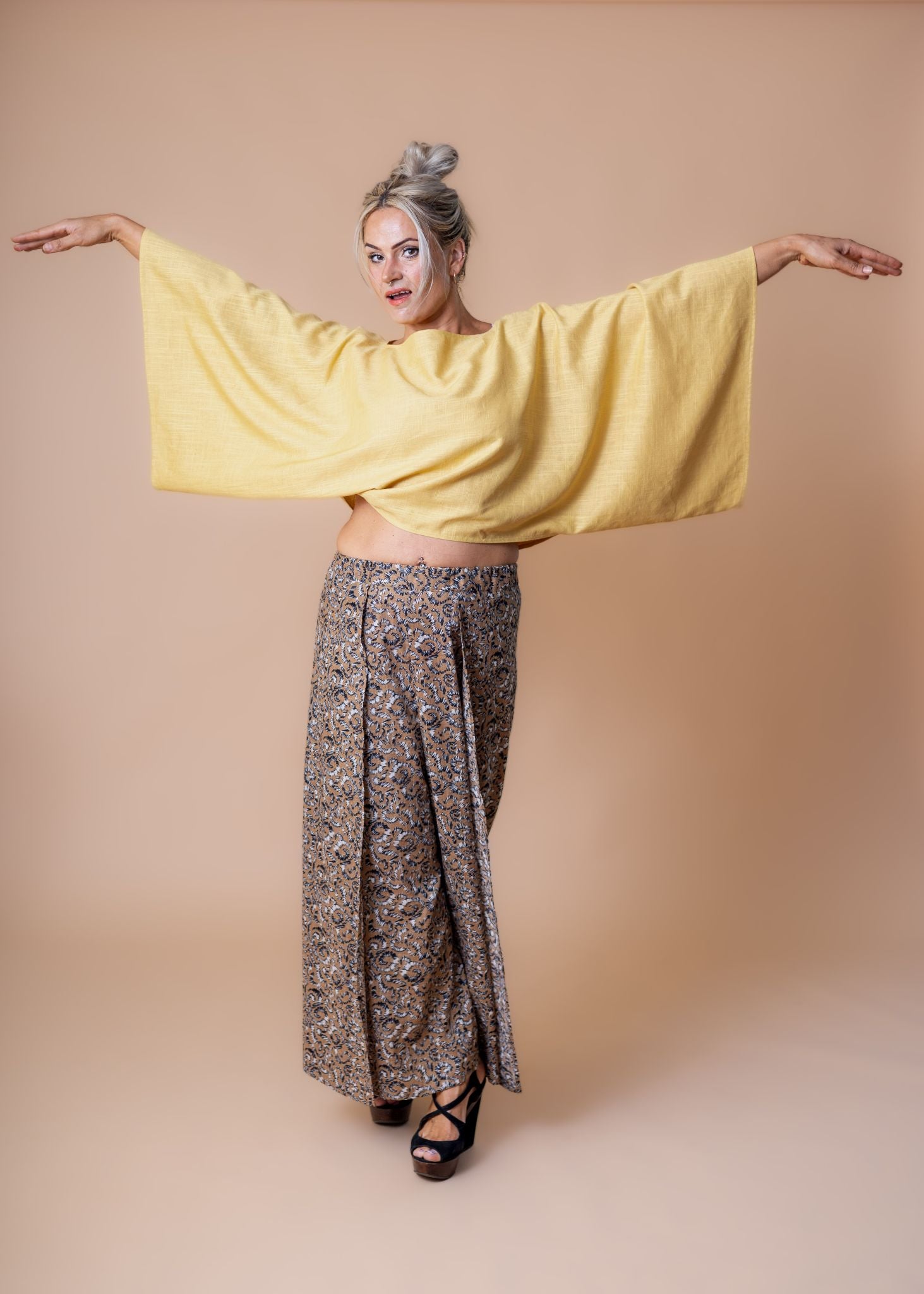 Laiade varrukatega kollane pluus