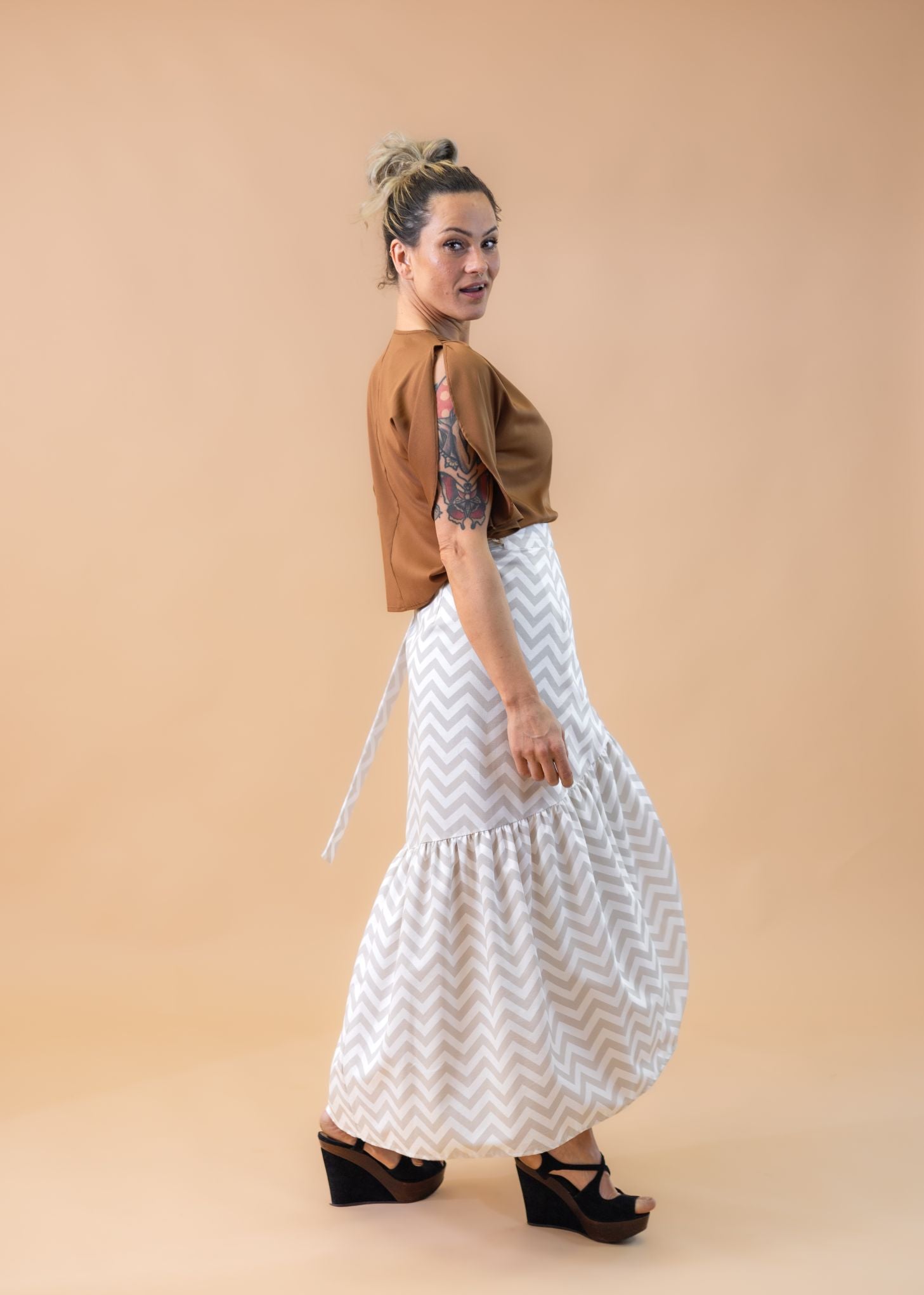 Laiade ja lendlevate varrukatega pluus, mis on naiselik ja elegantne. Õlal õmbluses on kerged krooked, mis lisavad rinnale avarust.