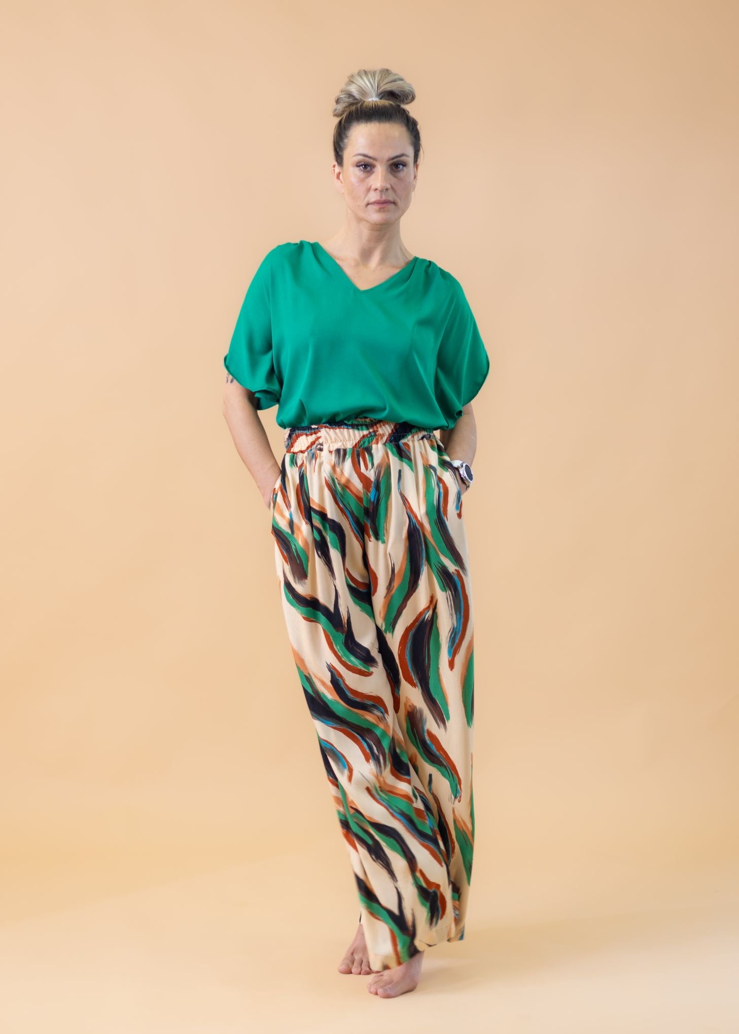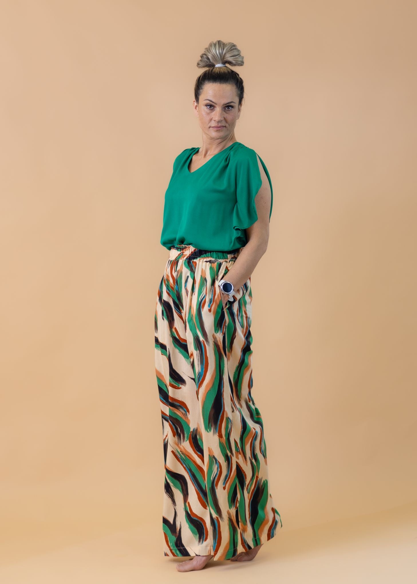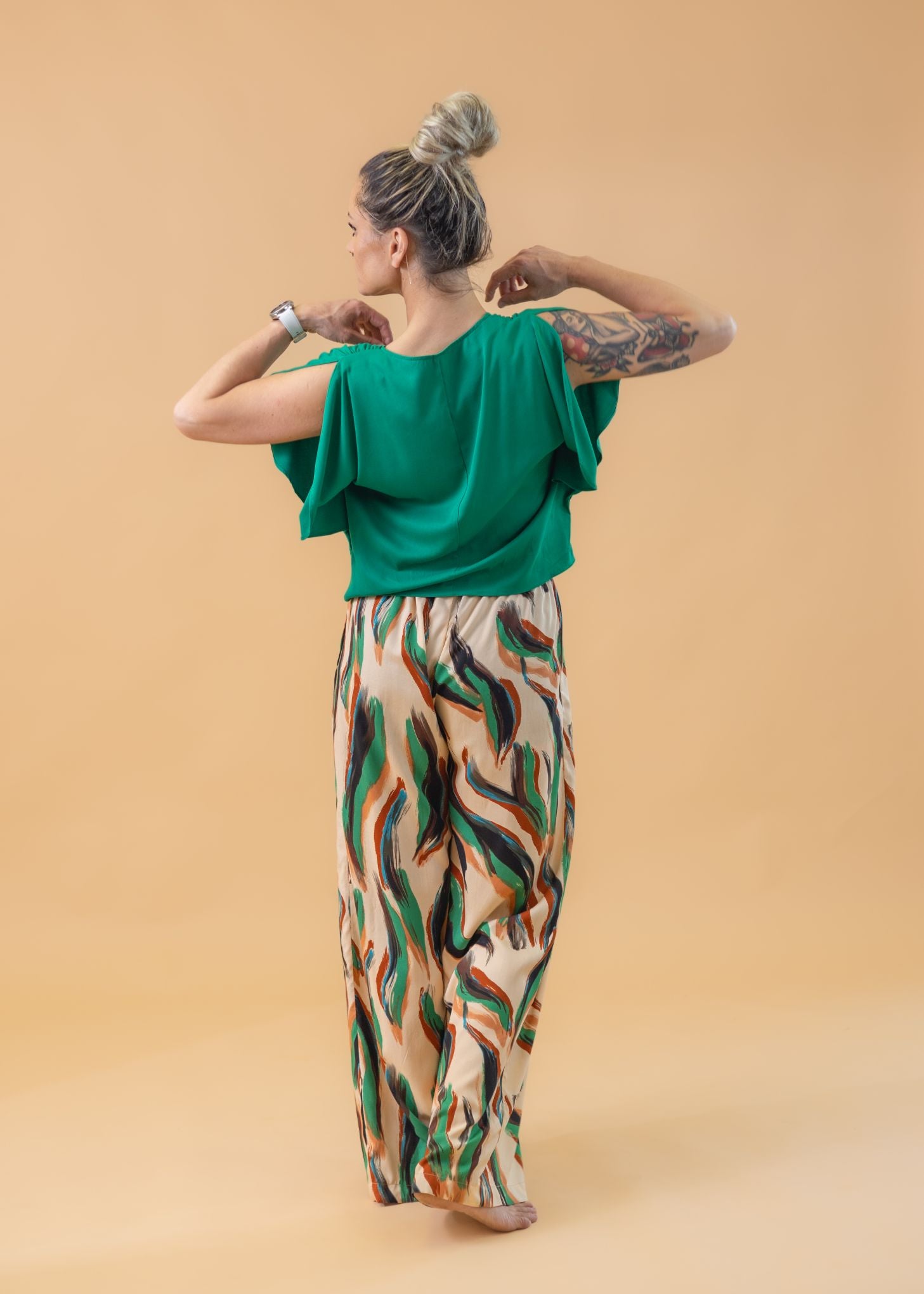 Laiade ja lendlevate varrukatega pluus, mis on naiselik ja elegantne. Õlal õmbluses on kerged krooked, mis lisavad rinnale avarust.